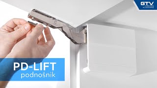 Podnośnik PD-LIFTNEW-MEDIUM-10 firmy GTV to odświeżona popularnego podnośnika PD-LIFT. Nowy podnośnik umożliwia zastosowanie na wyższych niż dotychczas frontach - będzie pasował do frontów o wysokościach aż do 600 mm. Podnośnik został wyposażony w funkcję soft close (cichy domyk), która zapobiega głośnemu uderzaniu frontu przy zamykaniu. Oferta dotyczy podnośnika z zaślepkami w kolorze białym.